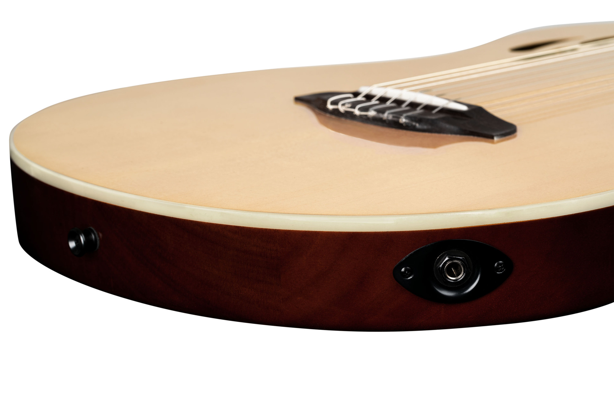 Ortega TourPlayer DeLuxe Nylon 6 String Spruce Natural + Gig Bag - Chitara electro-clasică Ortega Tour Player este un instrument potrivit pentru scenă, din seria Tour Player. Are un design elegant, cu spatele și lateralele din okume solid și top din arțar cu decupaje speciale, conturată cu arțar. Cu un gât din okume și o tastieră din laurel, această chitară oferă un sunet bogat și versatil.