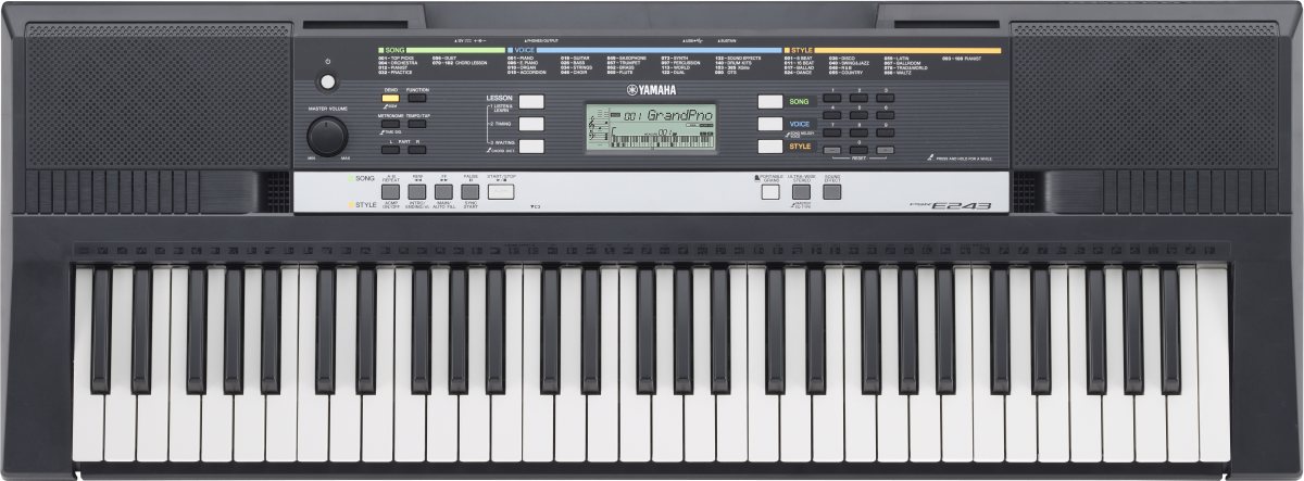 Yamaha PSR-E243, aranjor/ claviatura electronica recomandata incepatorilor. PSR-E233 are 61 de clape de dimensiune normala si polifonie de 32 note. PSR-E233 ofera functia integrata Yamaha Education Suite (Y.E.S.) ce va ofera posibilitatea de invatare/educare facila. Fiecare lectie se poate parcurge cu mana stanga, dreapta sau cu ambele maini.