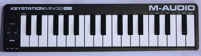M-Audio Keystation Mini 32 III - Claviatură MIDI ultra-portabilă, cu 32 de mini-clape sensibile la atingere şi butoane "pitch bend" si "modulation". Alimentare USB şi compatibilitate cu Apple iPad.