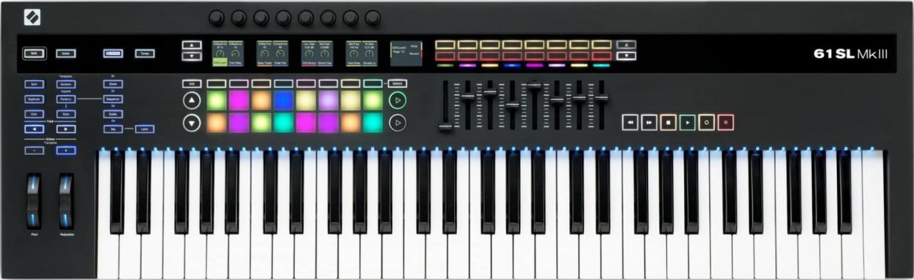 Claviatură MIDI cu 61 de clape sensibile la velocitate, 16 pad-uri RGB și controale multiple pentru DAW-uri, inclusiv Ableton Live. Include sequencer cu 8 track-uri, arpegiator și LED-uri RGB pentru evidențierea gamelor. Pachetul conține software-uri adiționale.