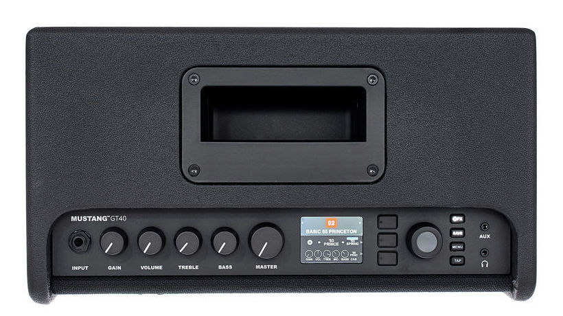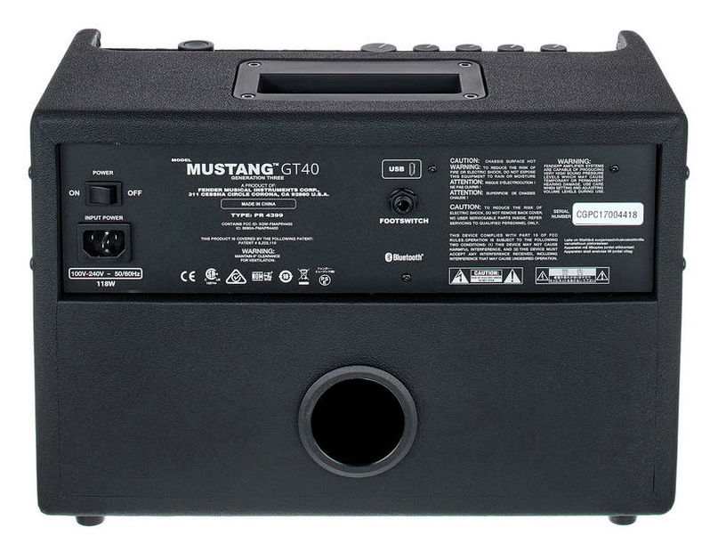 Fender Mustang GT 40, combo de chitară electrică cu tehnologie de modelare, 2 difuzoare de 6.5". Mustang GT are WiFI integrat pentru a facilita descărcarea de noi modelări de amplificare și efecte, iar conectivitatea Bluetooth permite streaming de muzică de pe orice dispozitiv compatibil.