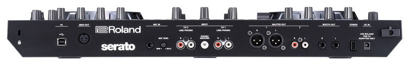 Roland DJ-505 - controller DJ profesional, cu 2 canale, controller Serato cu 4 deck-uri, care combină capacitățile avansate ale Serato DJ cu sunetele și sequencing-ul drum machine-urilor Roland TR-808, TR-909, TR-606, și TR-707, făcând să fie ideeal pentru DJ, performanțe live, petreceri, cluburi sau baruri. Beneficiază de o interfață audio incorporată cu rezoluție de 24-bit/ 48 kHz, două seturi ieșiri master ce includ conectori XLR și RCA, în timp ce ieșirea de booth este oferită pe 2 conectori balansați jack 1/4". Adițional, beneficiază de 2 ieșiri de căști cu conectori jack 1/4" și 1/8" ce permit utilizarea a două perechi de căști simultan. Pe lângă toate acestea, beneficiază de o intrare de microfon cu conector 1/4", ce permite conectarea unui microfon sau chiar instrument, putând utiliza pentru acestea și efecte precum gate, hi-pass filter, reverb, sau echo.
