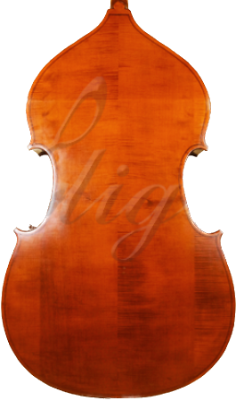 Gliga Contrabas 1/4 Genial 1 (scoala), spate drept - Contrabas executat manual, cu fața din molid de rezonanță, iar spatele, eclisa și gâtul din lemn de paltin. Fileul este încrustat pe față și pe spate, asigurând atât rezistența corpului și prevenirea crăpăturilor de-a lungul fibrei, cât și o notă de distincție și eleganță. Întregul proces de lăcuire este executat manual, cu lac de ulei.