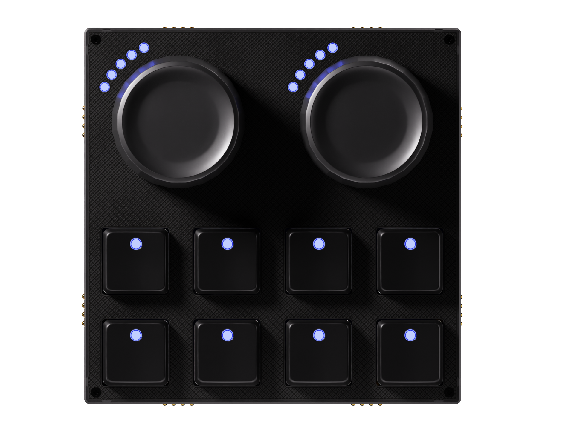 Două jog-wheel-uri endless de înaltă precizie și opt butoane cu switch-uri Gateron Hall effect sensibile la viteză și presiune. Construcție robustă, LED-uri RGB și integrare modulară Grid.