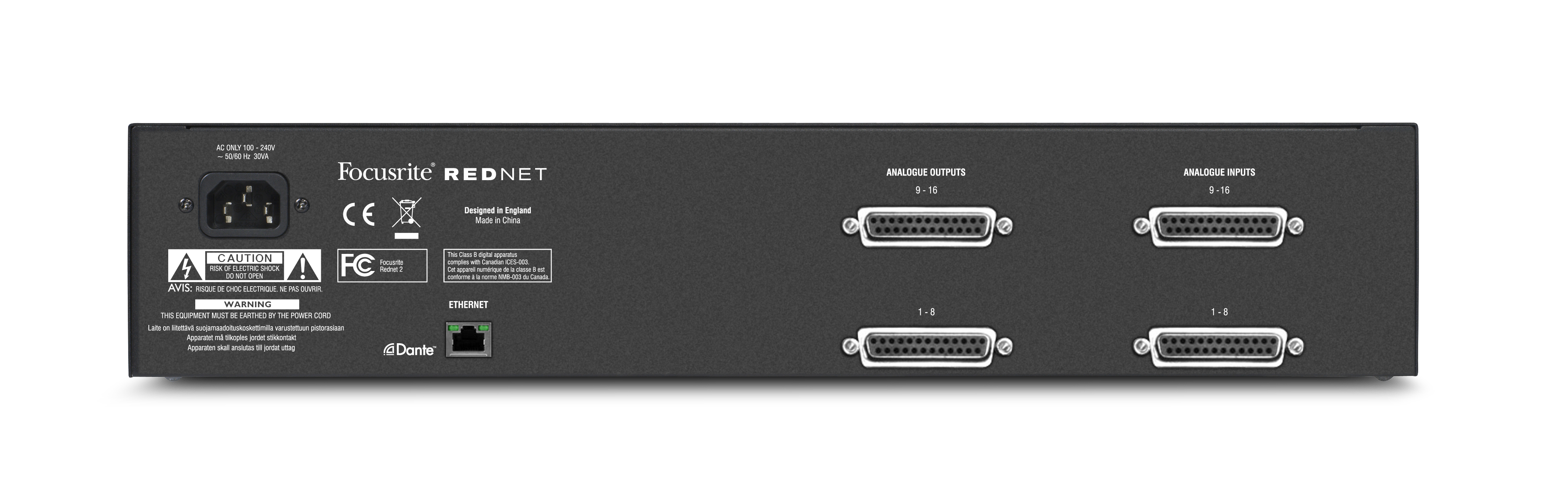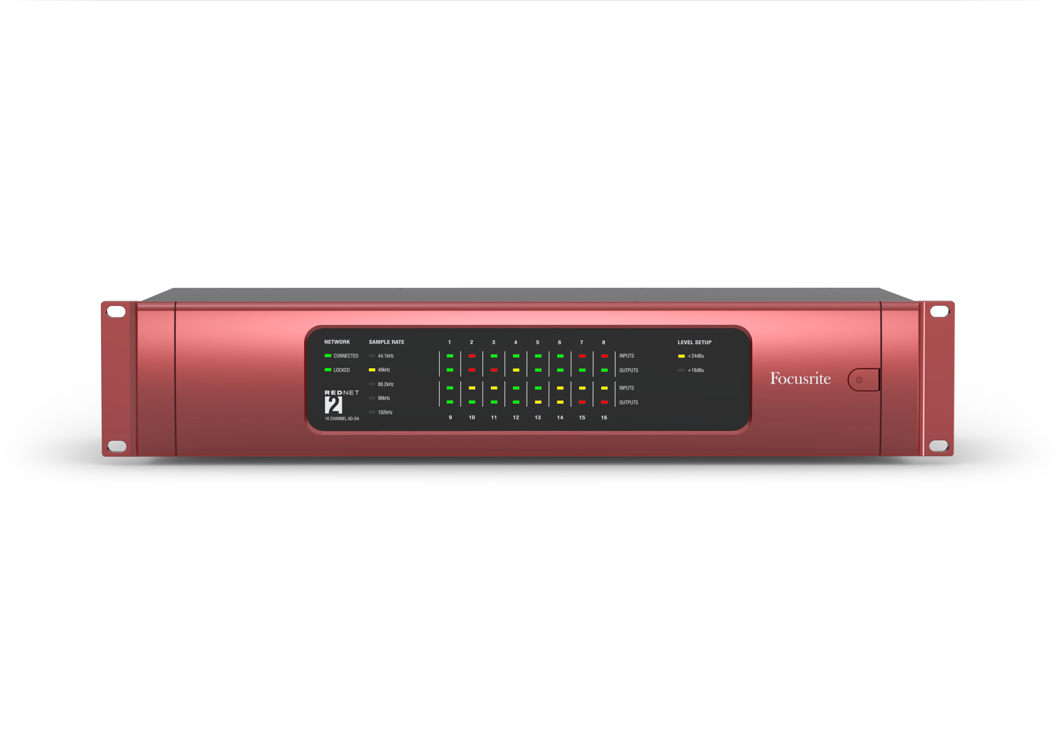 Focusrite RedNet 2 este o interfata de conversie analog-digitala si digital analogica ce permite integrarea in sistemul RedNet a 16 canale analogice si ofera si 16 iesiri analogice programabile din RedNet.