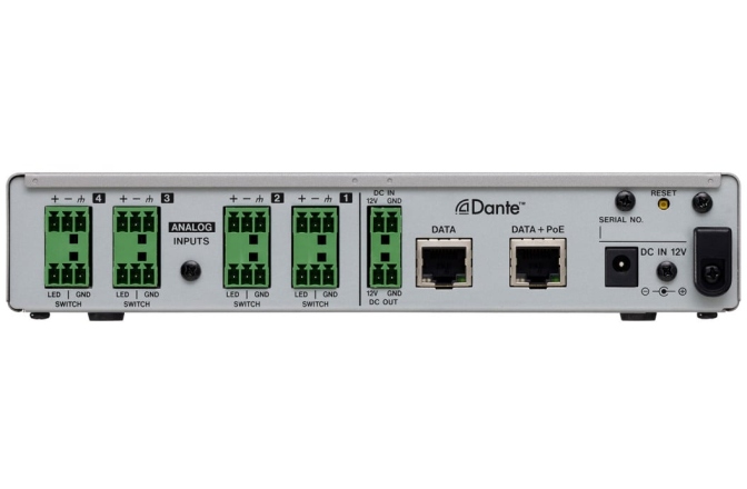 MM-4D/IN-E este un convertor compact cu 4 canale si DSP ce dispune de conectori Euroblock 1/2 19", 1U. Acesta converteste semnalele de intrare de microfon/line in semnale Dante.