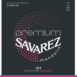 Setul de corzi Savarez 110R Premium pentru mandolină, dezvoltat împreună cu renumitul mandolinist Julien Martineau, este inspirat din sonoritatea caldă și expresivă a corzilor din secolul al XVIII-lea. Oferă o intonație perfectă, confort excepțional la interpretare și un spectru bogat de armonice pentru un sunet clar, echilibrat și omogen. Construcția specială îmbină corzi foarte subțiri din oțel inoxidabil cu corzi bas argintate pe miez sintetic multifilament, asigurând durabilitate și stabilitate superioară.