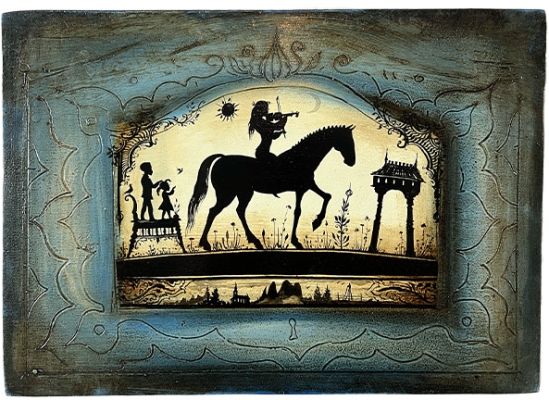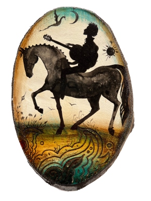 Pictura pe lemn - Calareț muzicant I 21 x 10.5