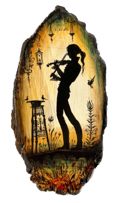 Pictura pe lemn - Barbat cu vioară I 21 x 10.5