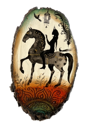 Pictura pe lemn - Prințesă pe cal 21 x 10.5