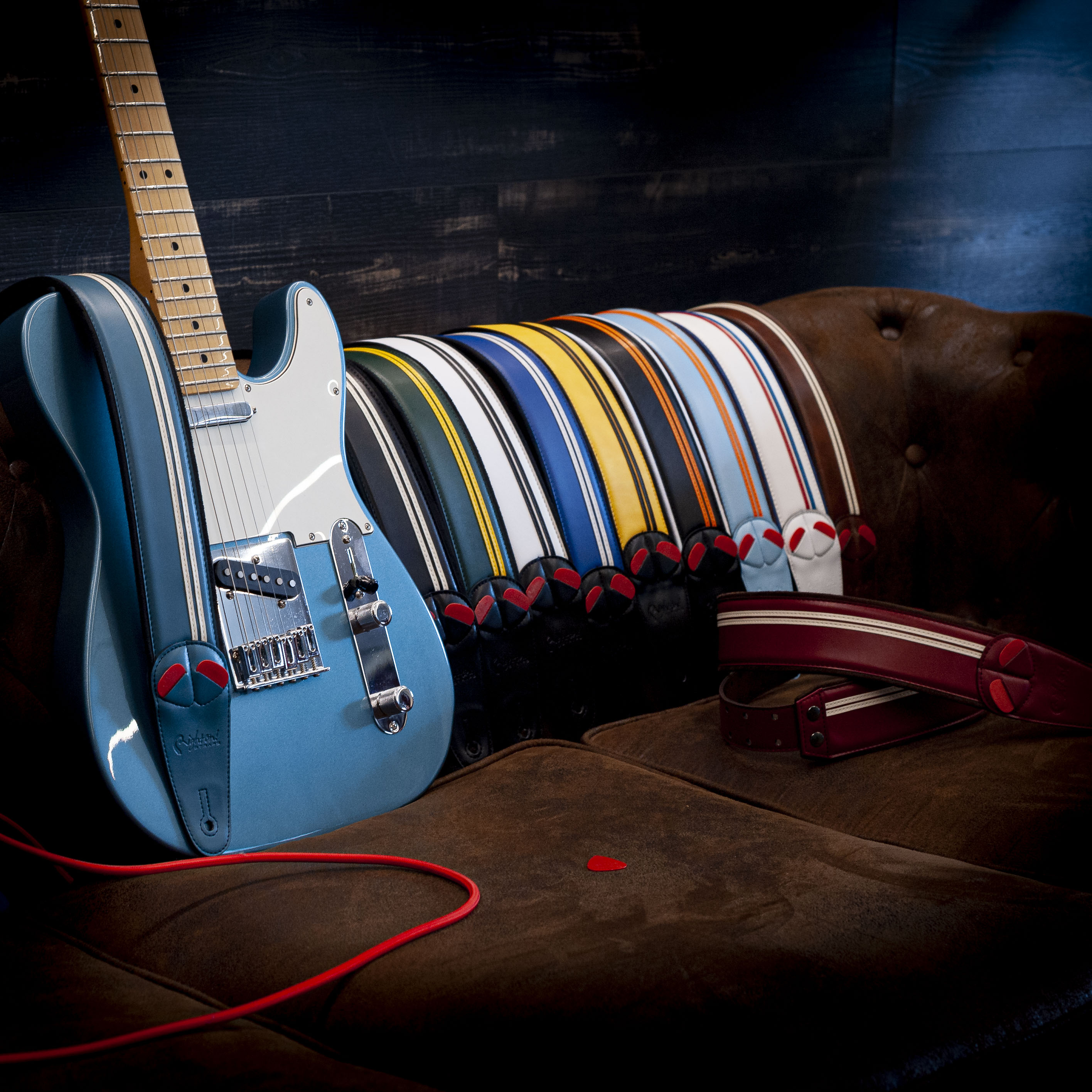 Această curea de chitară, care face parte din Colecția Race, are un aspect vintage clasic, inspirat de mașinile de curse vechi. Cureaua este neagră, cu două dungi „aurii”, care amintesc de culori vintage, viteză și steaguri în carouri. Fabricată din materiale sintetice de înaltă tehnologie, această curea vegană este durabilă și fără cruzime. Are o lățime de 6 cm și este reglabilă de la 95 la 145 cm cu exclusivul RAS (Righton Adjustment System). Cureaua este căptușită cu latex de 5 mm pentru confort și are două buzunare mici pentru pene și trei decupaje pentru acces ușor la alegere. Căptușeala din microfibră previne alunecarea sau lipirea, făcându-l o alegere ușoară și practică pentru muzicieni.