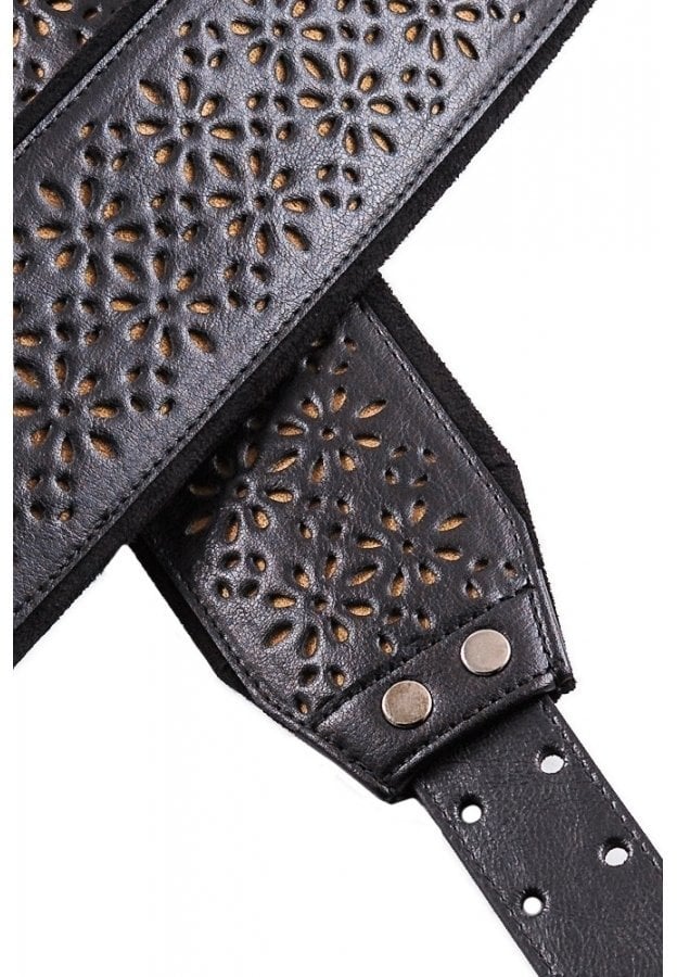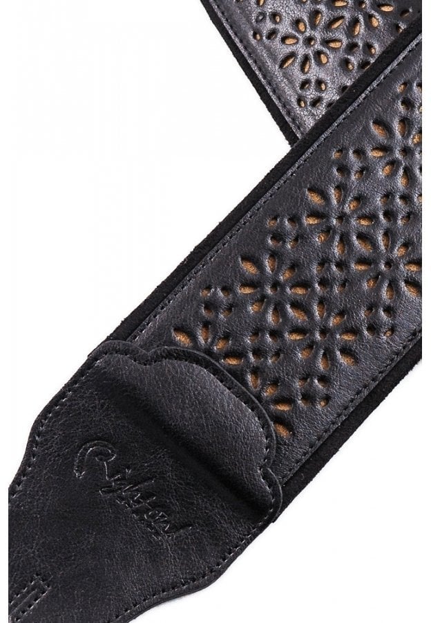 RightOn Bassman Alhambra BK - curea pentru chitară bass, cu design și aspect clasic, ce oferă o suprafață din piele sintetică cu microperforații, care au rolul de a face vizibilă microfibra de dedesubt și permit și o bună disipare a umezelii în timpul folosirii. Desenul microperforațiilor de pe suprafața externă a curelei aduce aminte de arhitectura și arta andaluză. Terminațiile curelei sunt din piele de bovină de calitate pentru o mai bună rezistență la folosirea îndelungată. Lungimea este reglabilă de la 98 de cm la 153 de cm, prin intermediul sistemului RAS (RightOn Adjustment System), ce permite o ajustare facilă și rapidă în orice situație practică. Cureaua are o lățime de 8 cm, ceea ce o face confortabilă în timpul folosirii instrumentului tău preferat. Un plus este și noul sistem al pastrării penelor pentru chitară bass în partea internă a curelei, prin intermediul a două mici buzunare, cât și fantele prezente pe partea reglabilă, fiind ținute ferm în poziție chiar și când această curea pentru bass este solicitată intens.