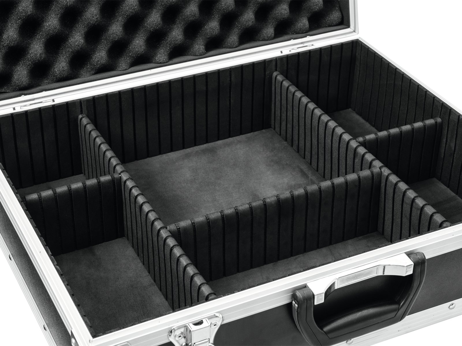 Cutie universală de transport cu spumă cub. Picatorul universal pentru carcasă ROADINGER este echipat cu căptușeală din spumă de înaltă rezistență și spumă cub. Acest lucru vă permite să vă adaptați individual carcasa la echipamentul dumneavoastră. Prin urmare, partea interioară poate fi divizată fără tăiere sau prelucrare ulterioară. Manopera de înaltă calitate, cu lemn lipit multistrat, cadru din profil de aluminiu cu colțuri rotunjite și colțuri cu bile de oțel de dimensiuni medii, cu trei picioare, conferă carcasei stabilitate. Husa de zbor are, de asemenea, două încuietori cu blocare și un mâner robust de transport.