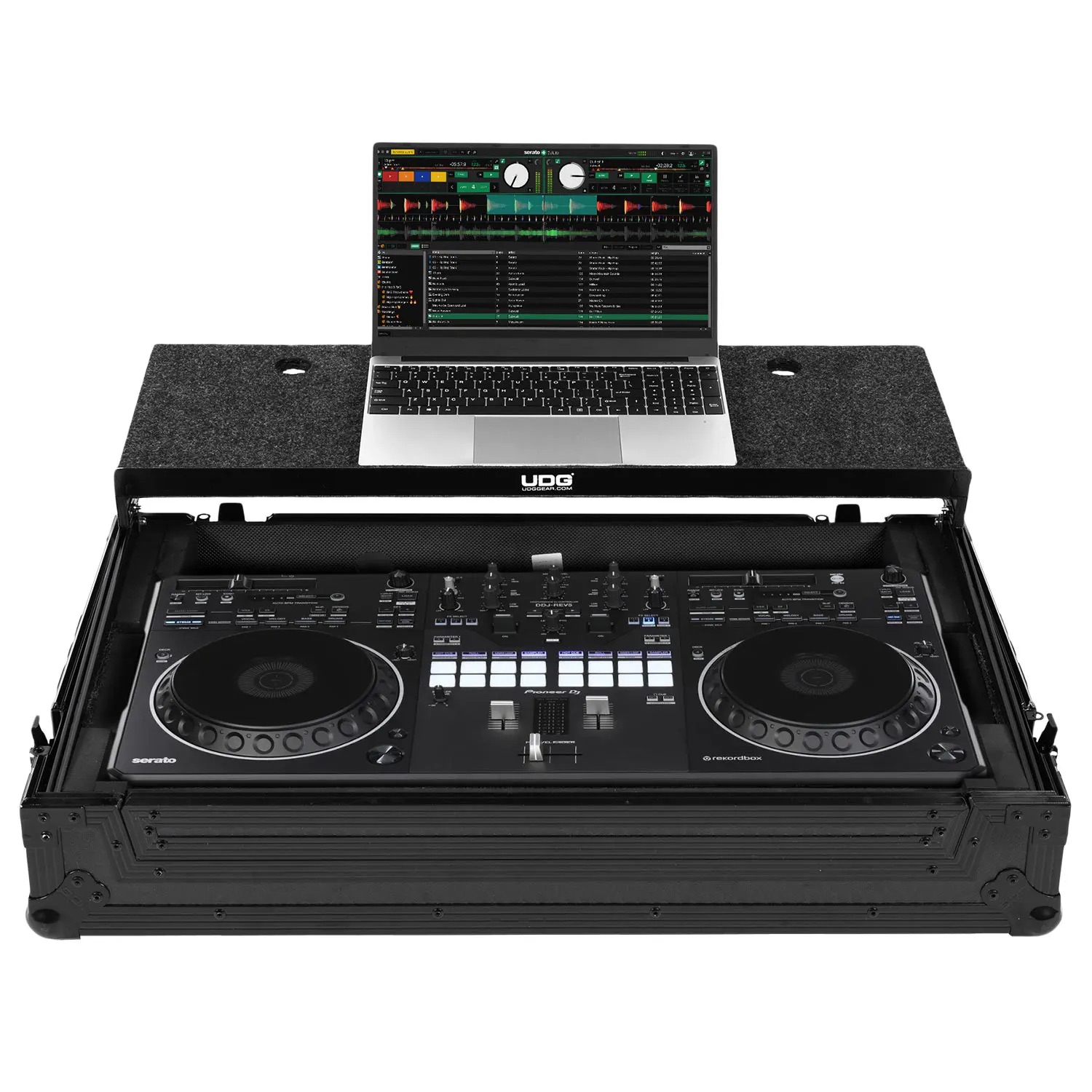 UDG Ultimate Flight Case DDJ-REV5 – Laptop - Flight Case pentru “Pioneer Dj DDJ REV-5” (cu raft pentru laptop), realizat din placaj robust de 9 mm grosime, exteriorul fiind laminat cu un finisaj negru în model „Stage Grip” (hexagonal/honeycomb). Interiorul beneficiază de protecție din spumă EVA de înaltă densitate, cu relief tip diamant, care protejează echipamentul de zgârieturi, praf și impacturi.