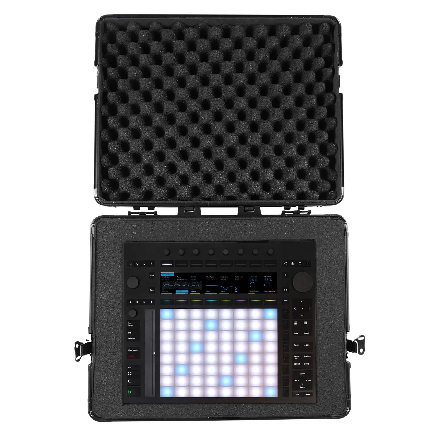 Interiorul este căptușit cu spumă de tip „pick & pluck”, care permite configurarea personalizată a compartimentelor — ideal pentru a fixa perfect controllerul Ableton Push 3 și pentru a crea spațiu suplimentar pentru cabluri sau alimentator.