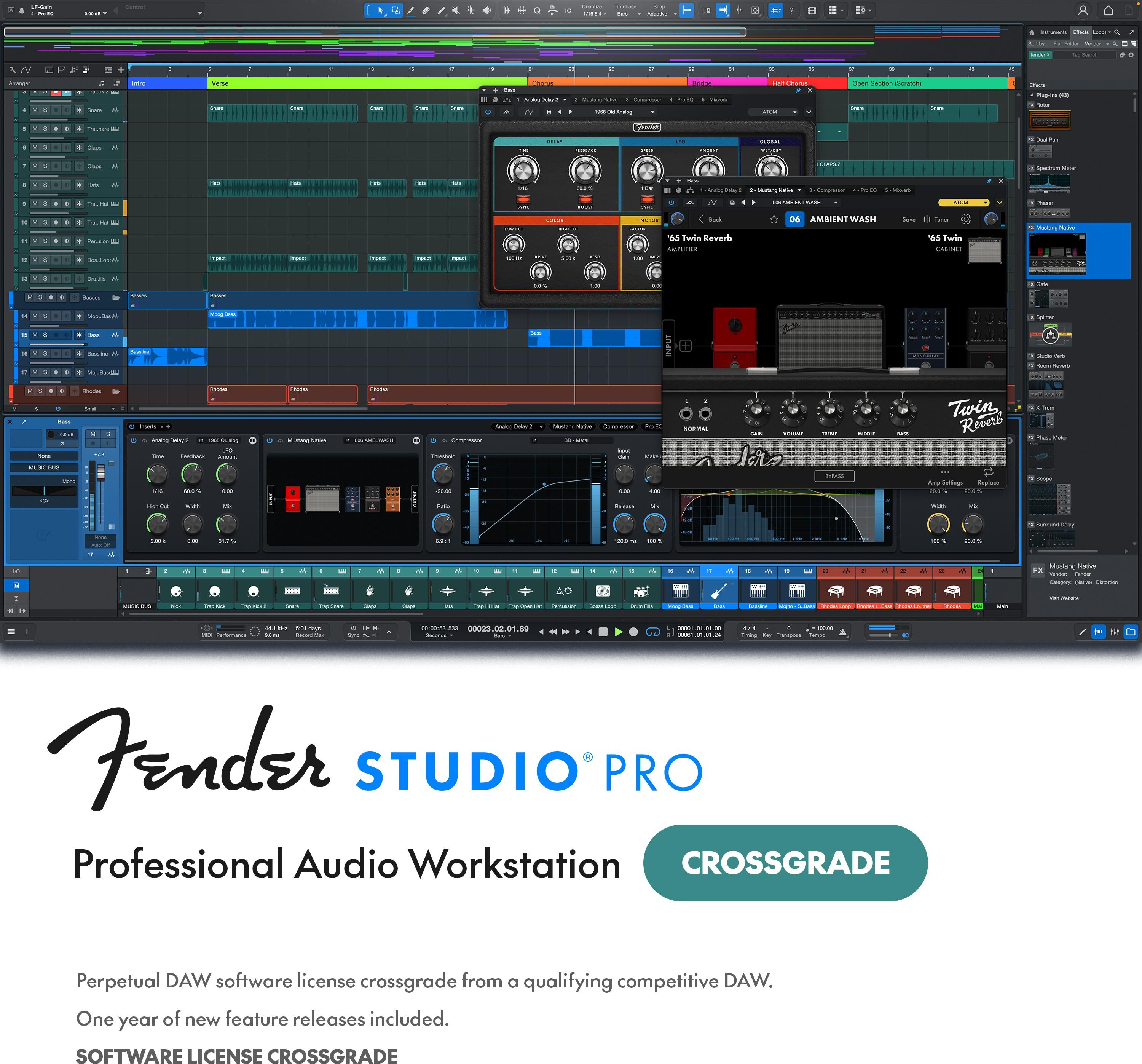 Fender Studio Pro 8 Crossgrade Perpetual License - Software de înlocuire (crossgrade) pentru alte versiuni de DAW cunoscute la nivel mondial, care nu aparțin de brand-ul Fender/Presonus.