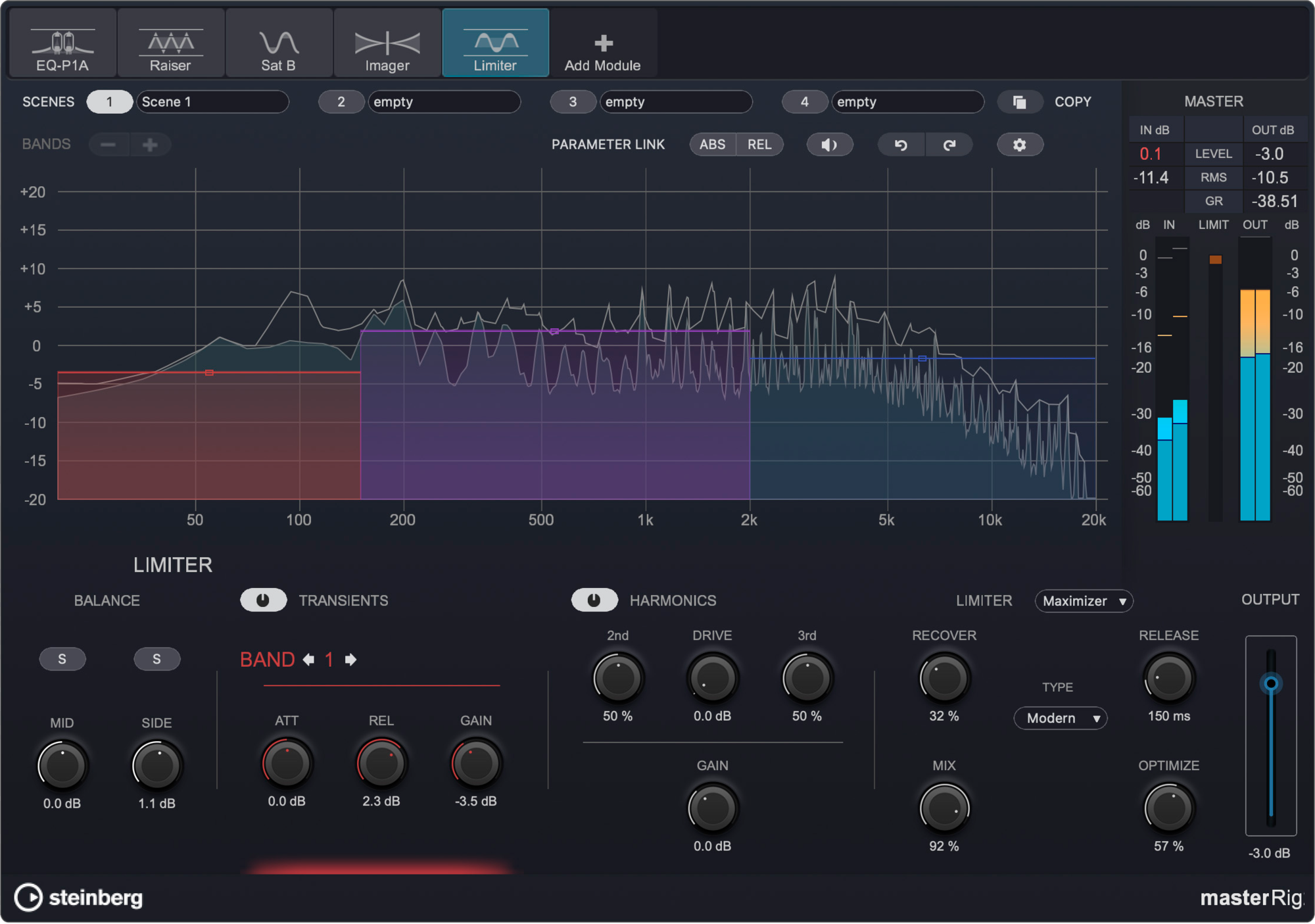 MasterRig 2 – suită modulară de mastering cu egalizator, compresor, limiter, saturare și stereo imaging