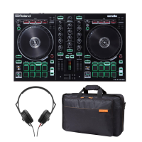 Roland DJ-202 - controler DJ cu 2 canale, controller Serato Intro cu 4 deck-uri, care moștenește capacitățile avansate ale DJ-808, și oferă o multitudine de caracteristici într-o unitate solidă și portabilă ideeală pentru aplicații mobile. Acesta oferă 2 platter-e mari, pad-uri dedicate și controale de transport, un sequencer incorporat și o intrare de microfon cu efecte profesionale pentru voce. Se alimentează prin USB, și oferă o rezoluție de sunet de 24-bit/ 48 kHz. Platanele oferă o performanță cu latență scăzută pentru scratch și cuing, iar controalele dedicate Serato DJ permit creearea și accesarea rapidă de hot cues, loops, și sample-uri, plus selectarea dintre 4 deck-uri cu butoane dedicate DEck Select. Fiecare canal beneficiază de un potențiometru de trim, control EQ pe 3 benzi, controale de filtre high/low, și un fader de nivel, în timp ce secțiunea master oferă potențiometre pentru volum master, cue/master mixing, volum căști, volum sampler, și un crossfader pentru tranziții line între deck-uri. De asemeni mai beneficiază de 3 butoane de selecție Serato FX pentru fiecare deck pentru controlul efectelor Serato's on-board FX.