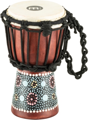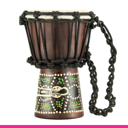 Mini Djembes în stil african sunt sculptate dintr-o bucată solidă de mahon cultivat în plantație. Acestea prezintă un exterior decorativ rafinat pictat cu puncte, totul realizat manual. Mărimea le face grozave pentru a vă bucura de cântând acasă sau pentru a se alătura cu un cerc de tobe. Aceste djembe de înaltă calitate sunt echipate cu capete de capră selectate manual și corzi de acordare din nailon pentru a oferi un sunet remarcabil.