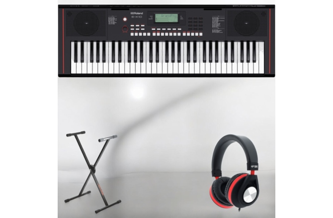 Roland E-X10 - Clapă cu 61 de clape cu răspuns la atingere, 433 Sunete + 256 GM2, 30 de stiluri de utilizator, polifonie 256 voci, include suport de partituri și unitate de alimentare.