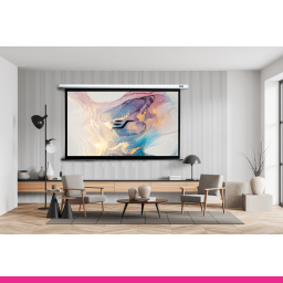 Material MaxWhite® cu gain 1.1, cu partea din spate de culoare neagră; unghi larg de vizionare 180°; 4K Ultra HD și Active 3D Ready; material alb mat rezistent și ușor de curățat; disponibil în diferite dimensiuni ale diagonalei.