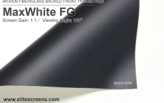 Materialul MaxWhite® este rezistent și ușor de curățat, cu un unghi de vizionare de 180° și gain de 1.1. Este compatibil cu proiecții 3D active, 4K Ultra HD și HDR.