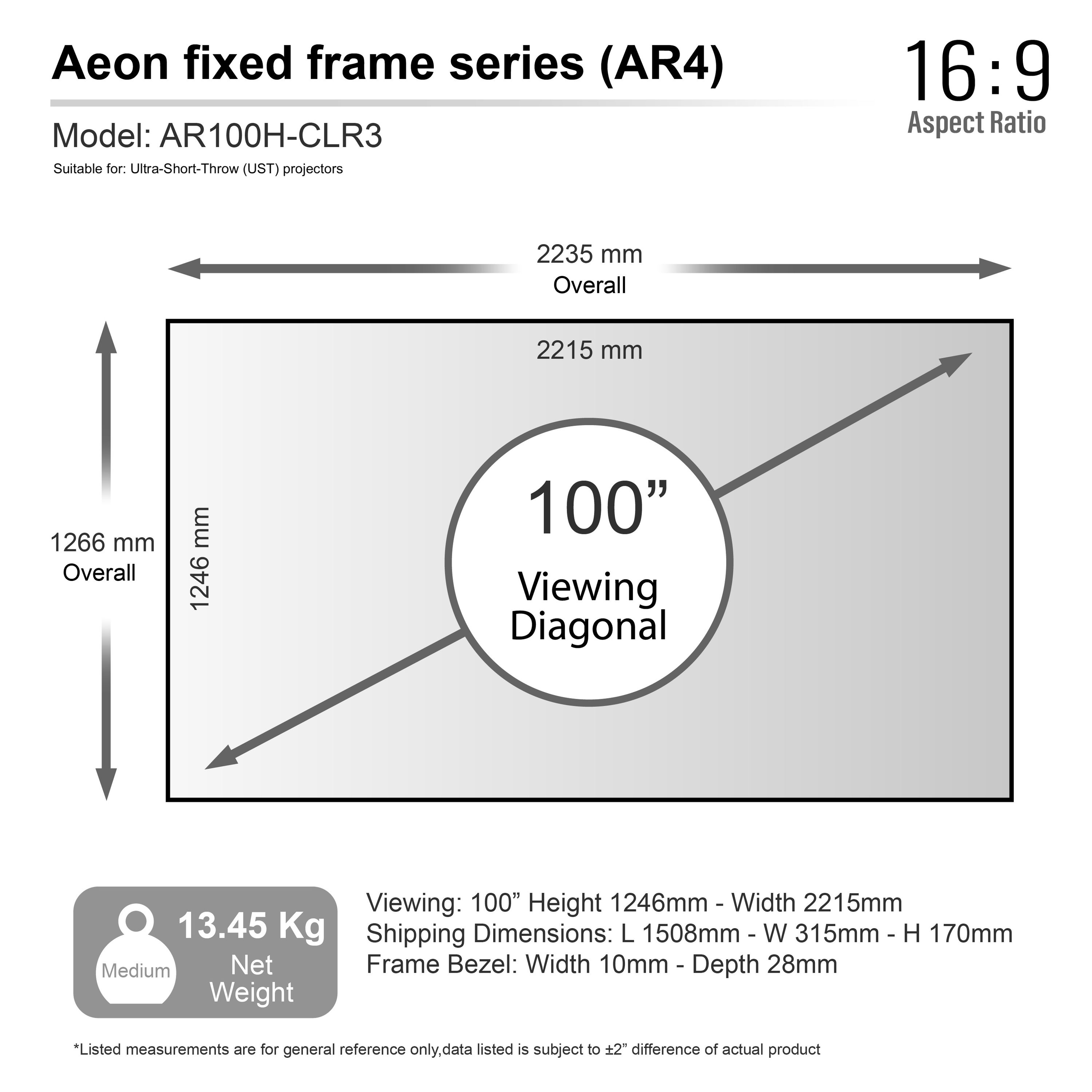 Elitescreens Ecran de proiectie AR100H-CLR3, rama fixa, 222 x 125 (100"),Ambient Light Rejecting, ALR ULTRA SHORT