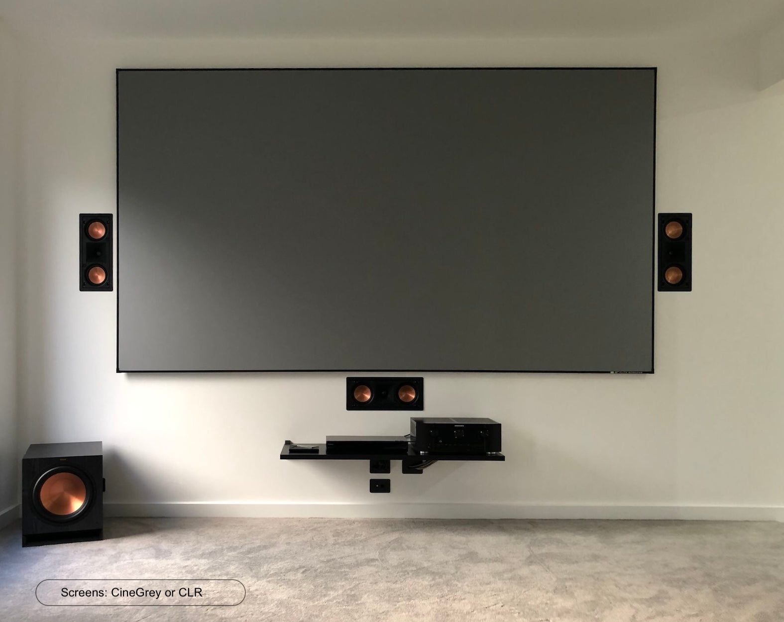 Materialul CLR® 3 absoarbe 90% din iluminarea de deasupra capului, îmbunătățind saturația culorii și nivelurile de negru. Contrastul este îmbunătățit de 75x față de ecranele standard alb mat. Proiectează la o distanță scurtă fără a umbri imaginea, cu un unghi de vizualizare de 170°. Potrivit pentru proiectoare UST.