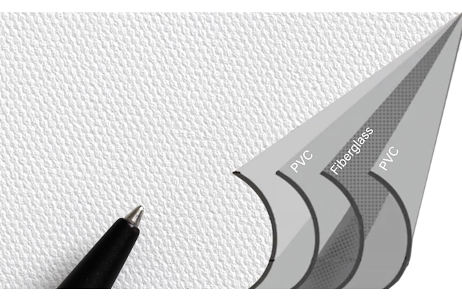Materialul MaxWhite® Fiberglass (FG) oferă o suprafață netedă, un unghi larg de vizionare și este rezistent la mucegai. Suprafața poate fi curățată ușor cu apă și săpun.