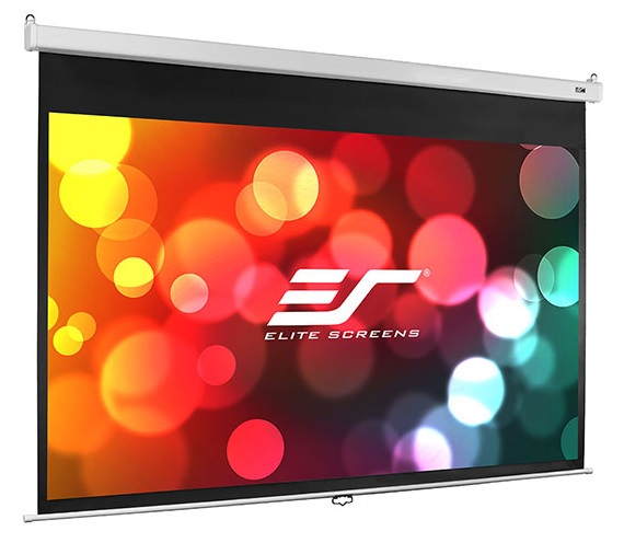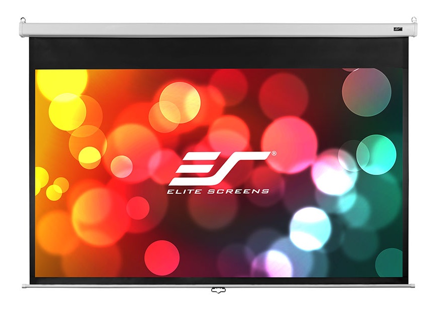 Elitescreens SRM-PRO M120HSR-PRO - Ecran de proiecție de perete/tavan, retractabil cu acționare manuală, cu suprafață utilă de proiecție de 265 x 149 cm, echipat cu o carcasă de culoare sidefie, special concepută pentru instalarea pe tavan sau perete. Materialul frontal de proiecție utilizat cu seria de ecrane Manual SRM Pro, este materialul bine-cunoscut MaxWhite® FG.
