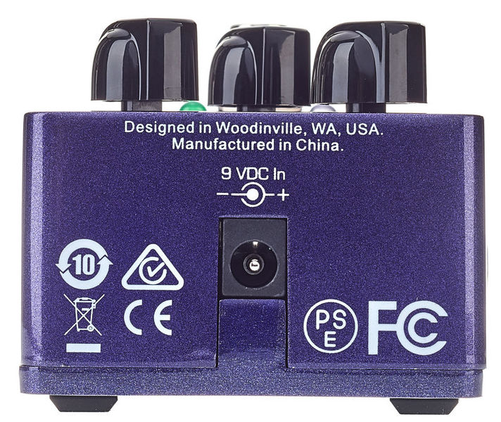 - Conectori: intrare (jack 6,3 mm) - ieșire (jack 6,3 mm) - conector de alimentare (conector de alimentare coaxial, 5,5 x 2,1 mm, pol negativ în interior)