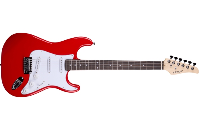 Arrow Tonecaster ST 111 Diamond Red Rosewood/White – Chitară electrică în stil Stratocaster, de culoare roșu lucios, cu pickguard alb. Corpul este din plop, în timp ce gâtul din arțar canadian este echipat cu o tastieră din Palisandru, iar cele 3 doze single-coil sunt ideale pentru versatilitate tonală. Chitara are un cutaway asimetric care face să fie ușor și confortabil să ajungi chiar și la cele mai înalte freturi.