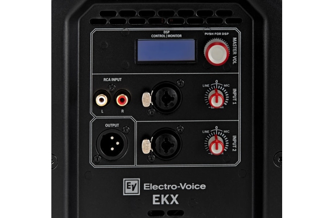 Electro-Voice EKX-15P - boxă activă cu procesare de sunet QuickSmartDSP de înaltă precizie, ce oferă interfață de utilizator cu control single-knob și meniu de navigare intuitiv via display-ul LCD. Este amplificată de amplificatorul eficient de 1500 W de clasă D, care oferă un vârf SPL de 134 dB. Beneficiază de un sistem de răcire cu ventilator cu multiple viteze, controlat în funcție de temperatura internă a incintei, traductoare sincronizate de semnal patentate de Electro Voice (Signal Synchronized Transducers™ (SST). Toate acestea într-un cabinet confecționat din lemn de 15 mm, cu ranforsare internă, cu finisaj vopsit EVCoat, 8 puncte de montare cu filet M10, montură pentru fixare pe stâlp, mânere și grilă de protecție din metal.