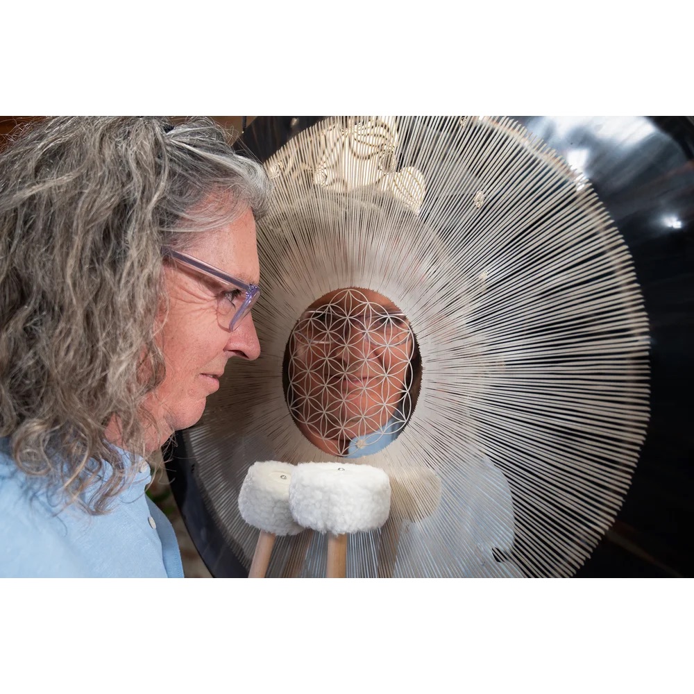 Meinl Sonic Energy 24'' Flower of Life Soundscape Gong, 64 Hz – Gong realizat manual în Germania din nichel-argint de înaltă calitate, oferind un peisaj sonor bogat, profund și dinamic, care prinde viață chiar și la cea mai ușoară atingere. Acordat la 64 Hz, acest gong generează vibrații adânci și stabilizatoare, invitând la calm, împământare și conexiune interioară. Gravura Flower of Life, simbol al geometriei sacre, completează experiența sonoră cu o puternică dimensiune vizuală și spirituală.