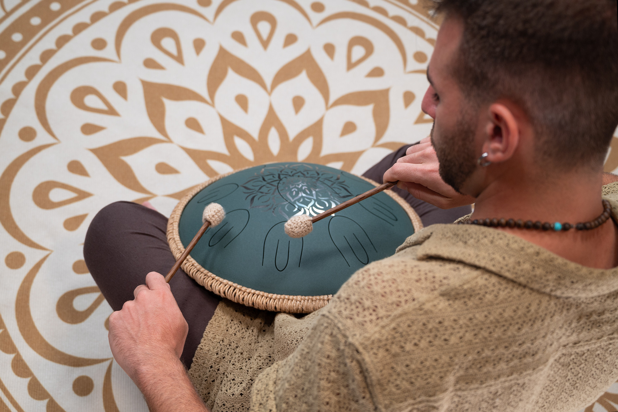 Meinl Sonic Energy 16'' Octave Steel Tongue Drum, F# Minor, 9 Notes, 432 Hz, Dark Green, Engraved floral design