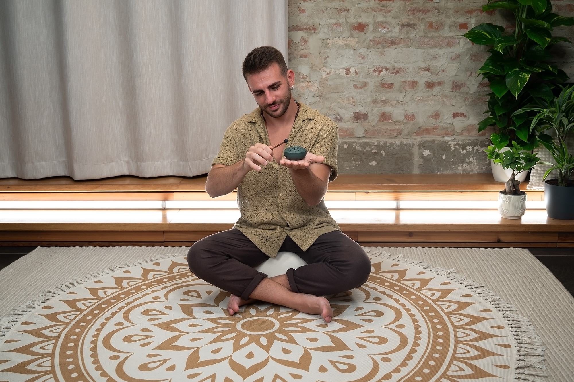 Meinl Sonic Energy 3'' Pocket Steel Tongue Drum, A Major, 6 notes, 440 Hz, Dark Green, Germ of Life