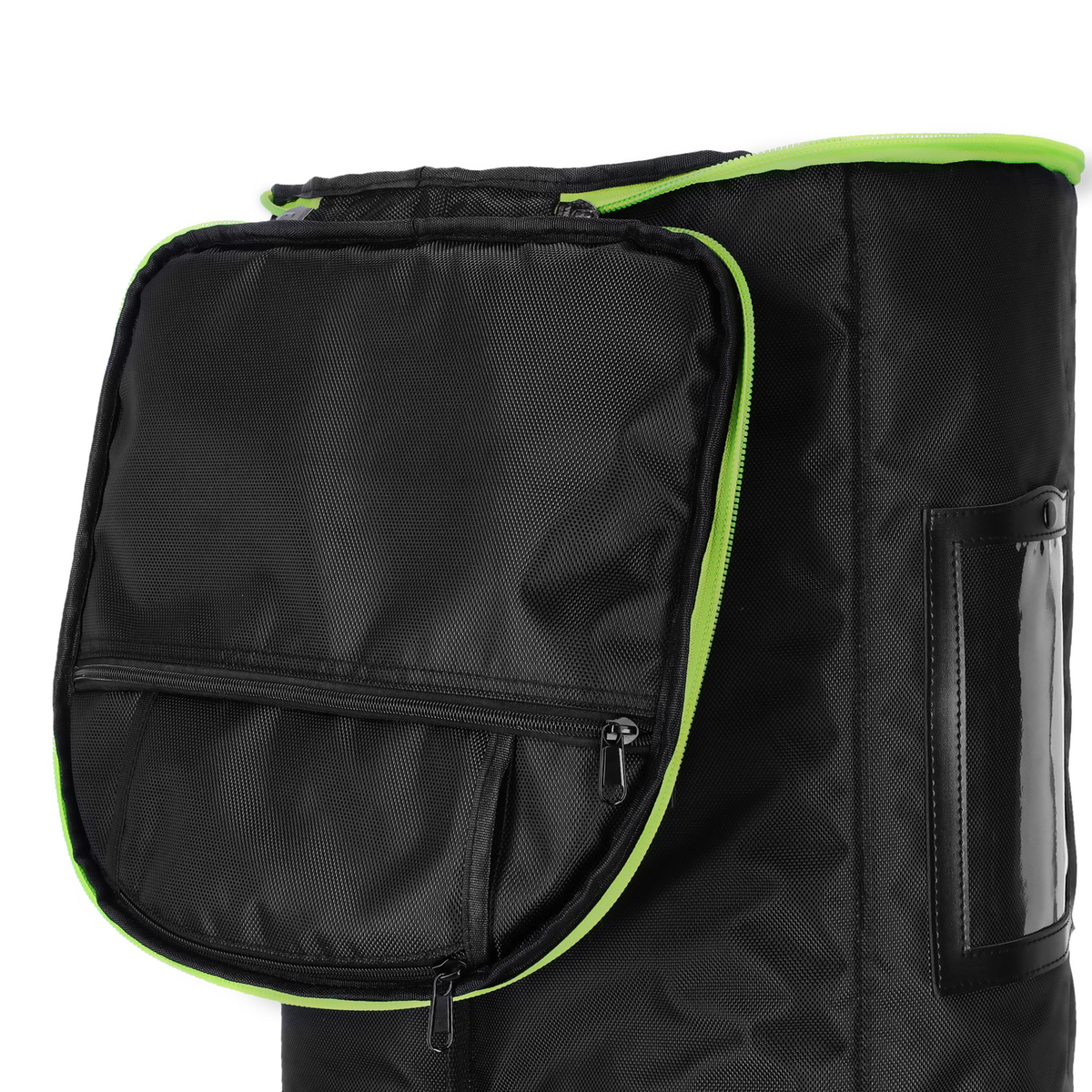 Mânerele căptușite, fermoarul rezistent și curea de umăr reglabilă asigură manevrare ușoară, iar compartimentul transparent pentru etichete și spațiile suplimentare pentru accesorii facilitează organizarea.