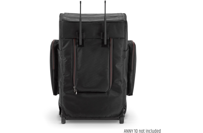 Două buzunare exterioare pe lateralele husei de protecție oferă mult spațiu pentru depozitarea accesoriilor, cum ar fi cablurile de rețea și XLR.