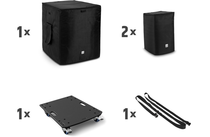 Acest set conține tot ce aveți nevoie pentru a vă transporta sistemul DAVE 15 G4X în siguranță și ușor. Sunt incluse o placă cu rotile, o husă de protecție pentru subwoofer, două capace de protecție prin satelit și o curea de prindere. Toate accesoriile se potrivesc perfect cu sistemul DAVE 15 G4X.