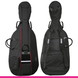 Fabricată din material GEWA-Tex negru, căptușeală interioară tricot 25 mm. YKK fermoar, întăritură la endpin, bridge și melc. Husă arcuș întărit cu shell de lemn. Buzunar mare pentru partituri și corzi, buzunar suplimentar pentru accesorii, curele rucsac cusute, dungi reflectorizante pe față și spate, bandă de securitate la endpin.