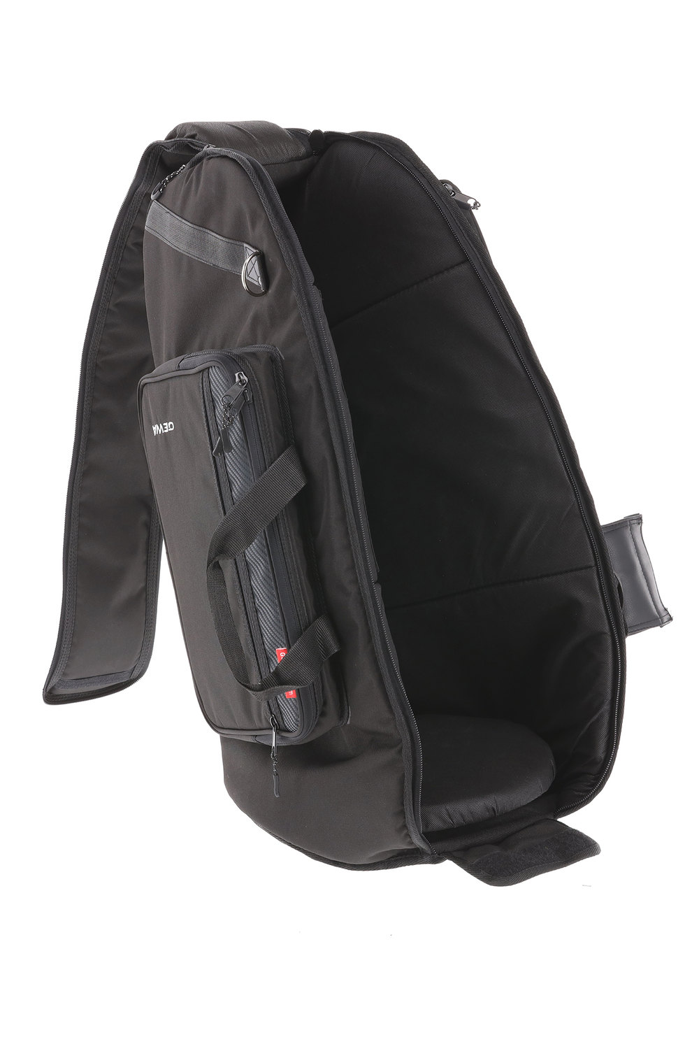 Cordura 600 Denier, impermeabilă, căptușeala de 30 mm, întăritură de placaj pentru pâlnie. Curele rucsac ajustabile cu quick stow sistem, buzunar atașat pentru accesorii, curea uăar, culoarea neagră. Lungime totala: 70 cm, diametru pâlnie: 28 cm.