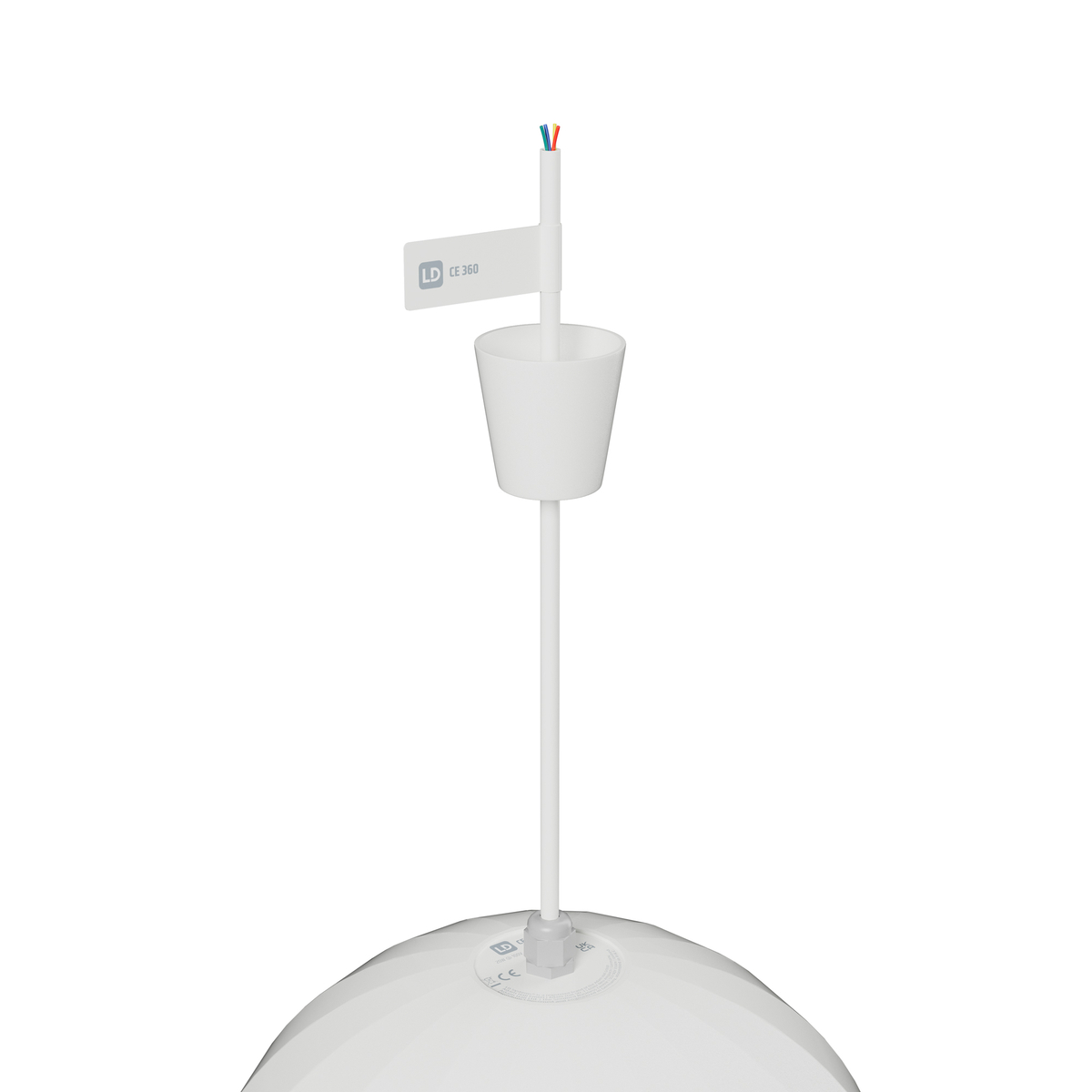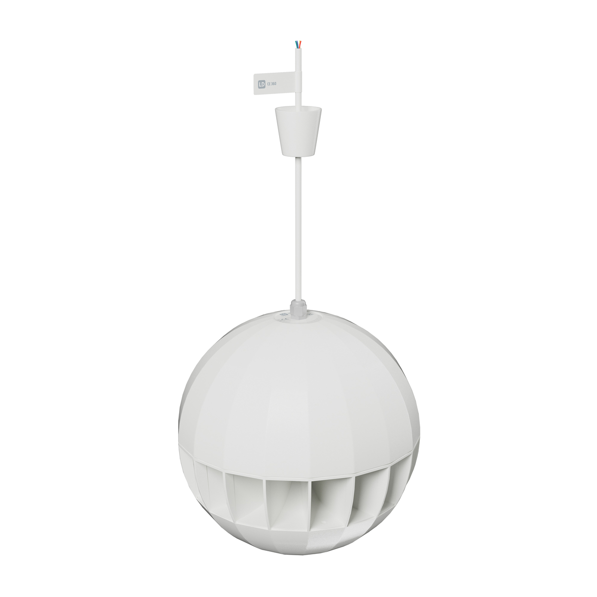 Difuzor suspendabil decorativ, formă sferică, CE 360, cu rotire la 360°, pentru o acoperire audio uniformă și instalare simplă, ideal pentru muzică de fundal și aplicații de vorbire.