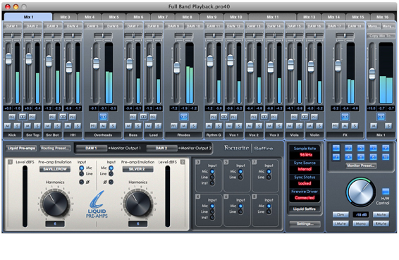 - mixer DSP de zero-latenta. 18 x 16 DSP mixing cu Saffire Mix Control. Capabilitati extinse de rutare si monitorizare.