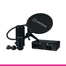 Steinberg IXO 12 B Podcast Pack – Pachet pentru înregistrări sau podcast compus din interfață Audio USB 2 x 2 IXO 12 black și microfonul condenser ST-MG01, accesorizat cu stativ trepied de birou cu pop-filtru.