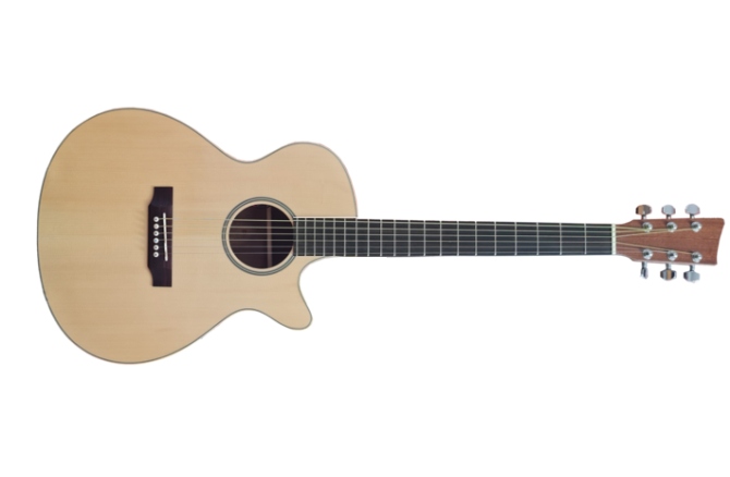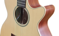 Hora Reghin Jumbo Molid Solid / Mahon Asim EQ Fishman Slim Satin – Chitară electro-acustică mărimea Jumbo echipată cu Cutaway Venețian, doză piezo & preamplificator Fishman Isys +. Potrivită pentru sesiuni live sau în studio.