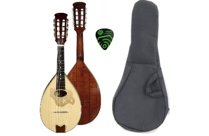 Mandolina model Portughez II cu fața din lemn de molid și spatele și eclise din paltin.