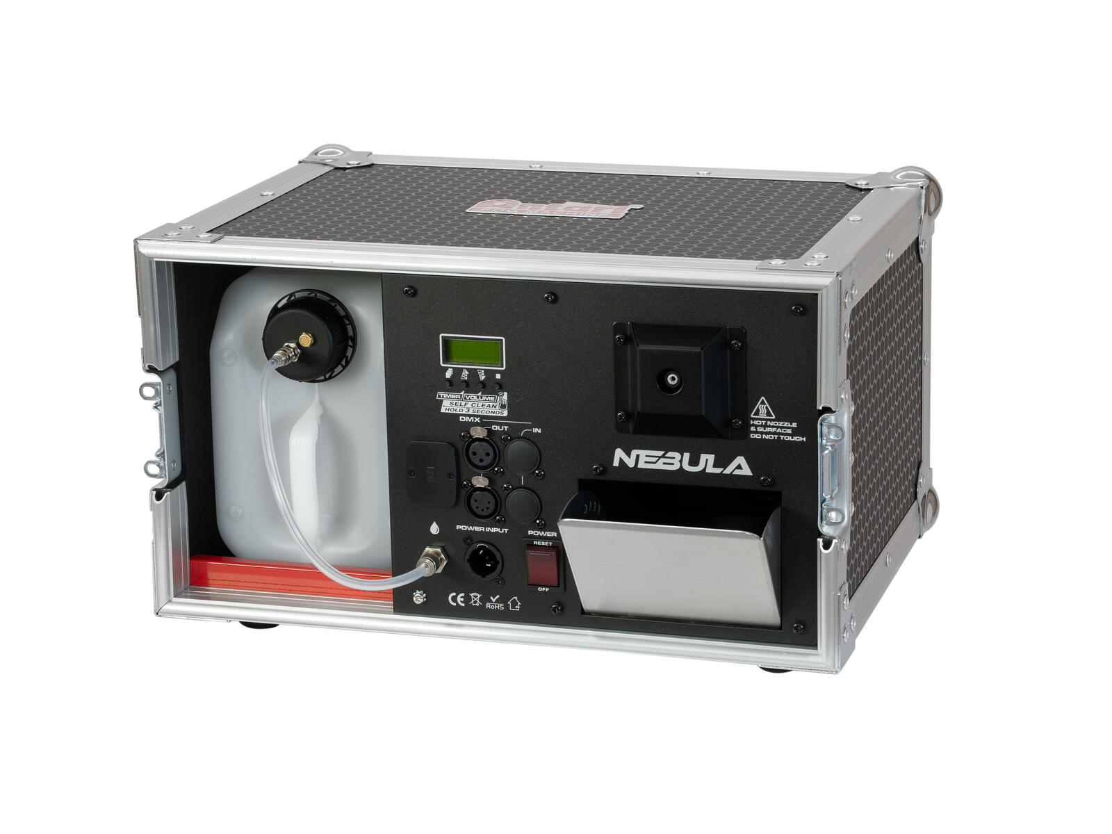 Mașină de ceață de înaltă performanță în carcasă de transport, un echipament profesional conceput pentru a genera rapid cantități mari de ceață fină și persistentă, ideală pentru scene, concerte și evenimente. Integrarea într-o carcasă de transport cu roți o face potrivită pentru utilizare în turnee și aplicații mobile. Cu ventilator puternic și unghi de ieșire reglabil, asigură distribuție uniformă și control precis al efectului.