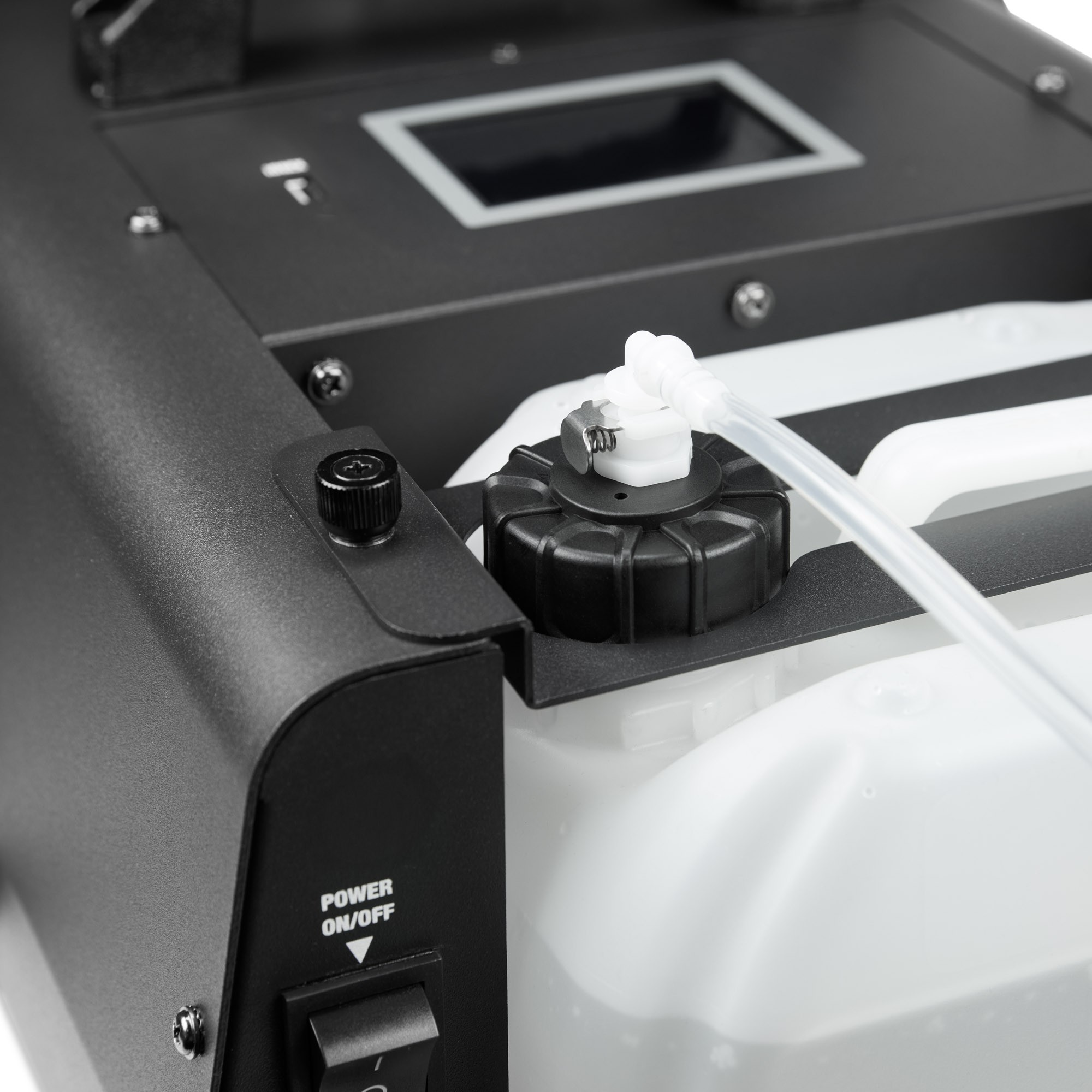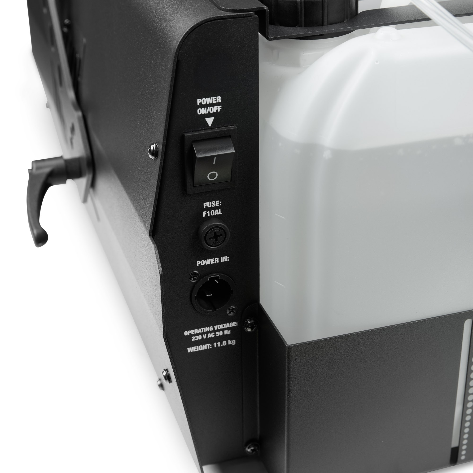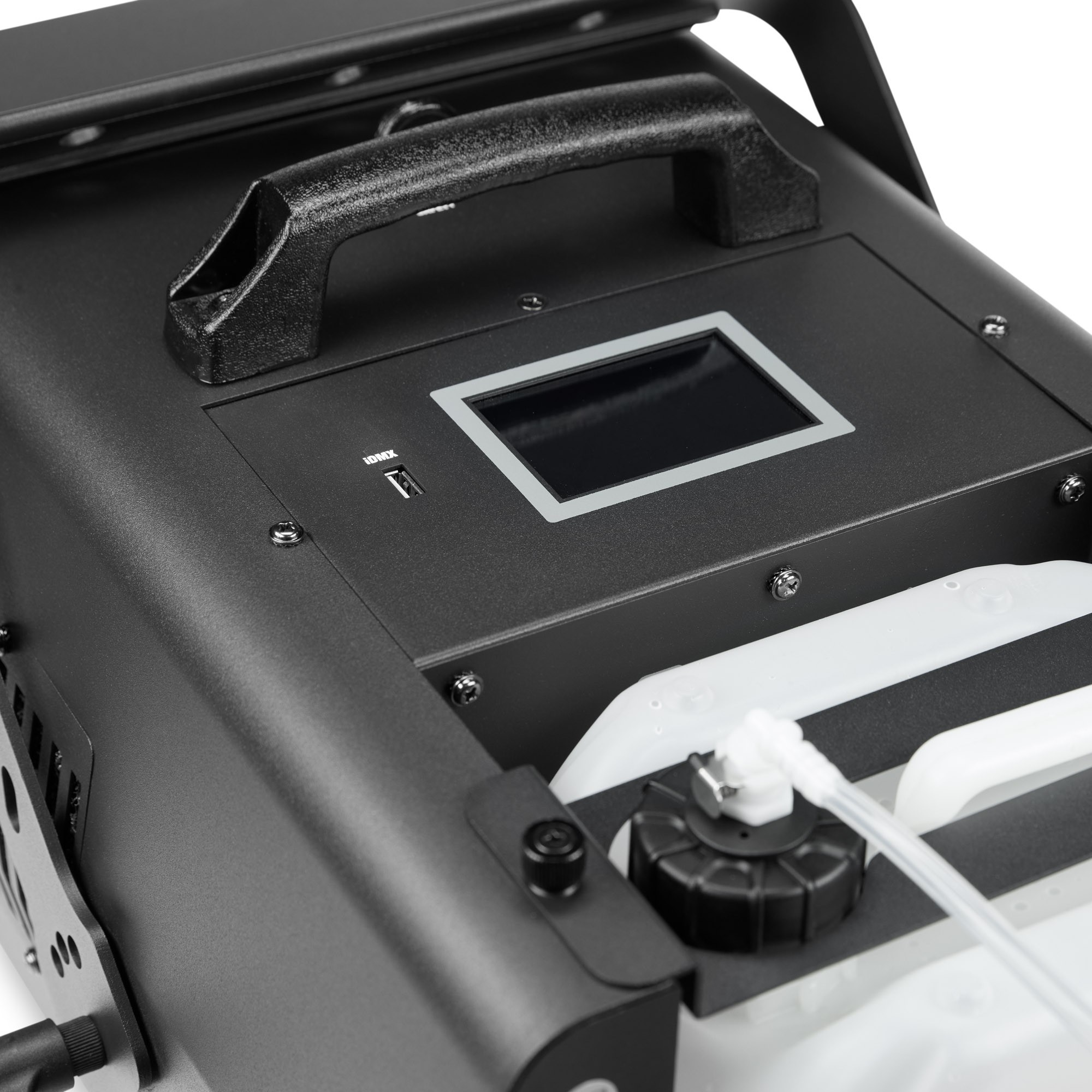 Poate fi controlat în modul DMX cu 2 canale și operat ca unitate independentă. Este echipat cu intrări și ieșiri DMX cu 3 și 5 pini și are un design robust cu un slot pentru canistre de fluid de până la 5 litri.