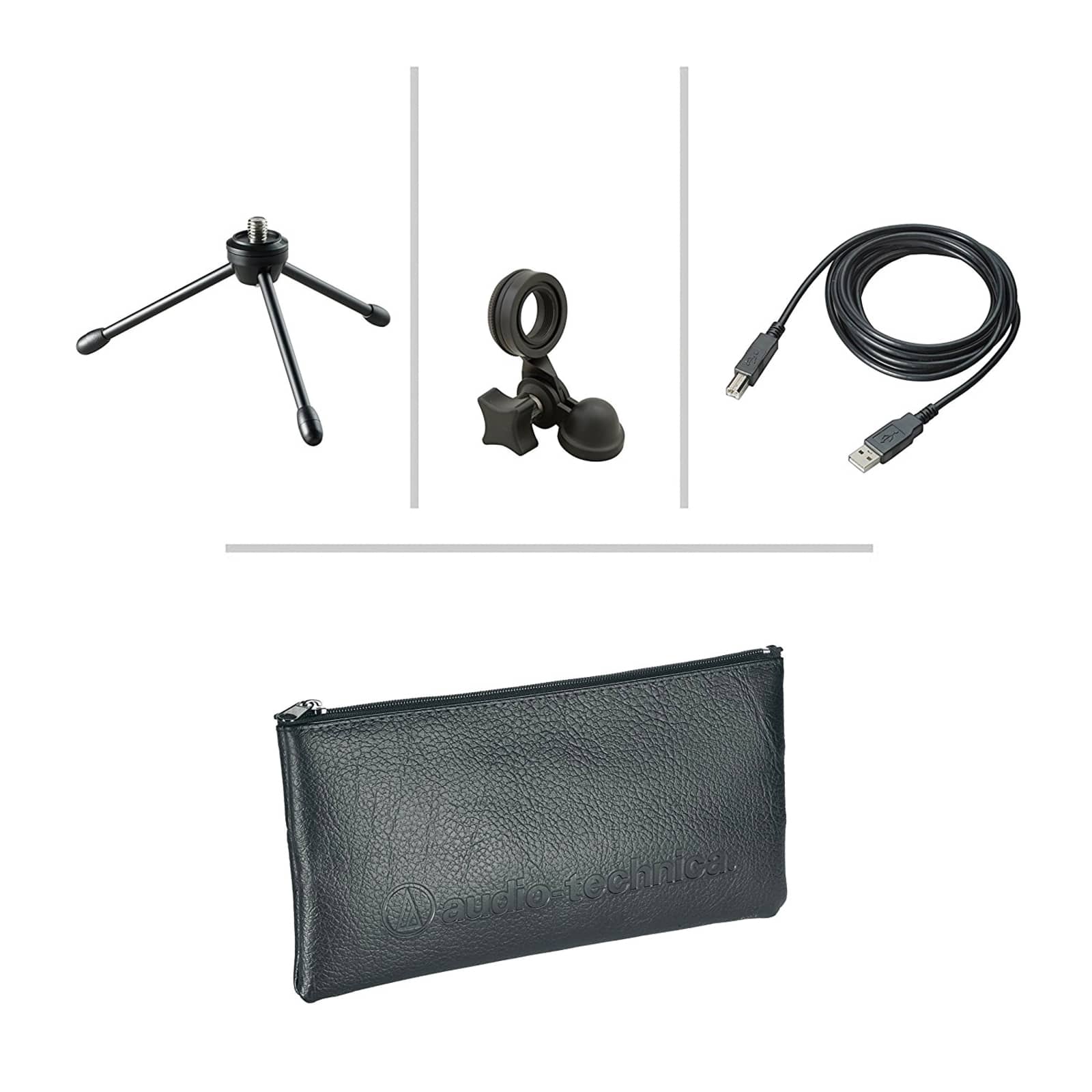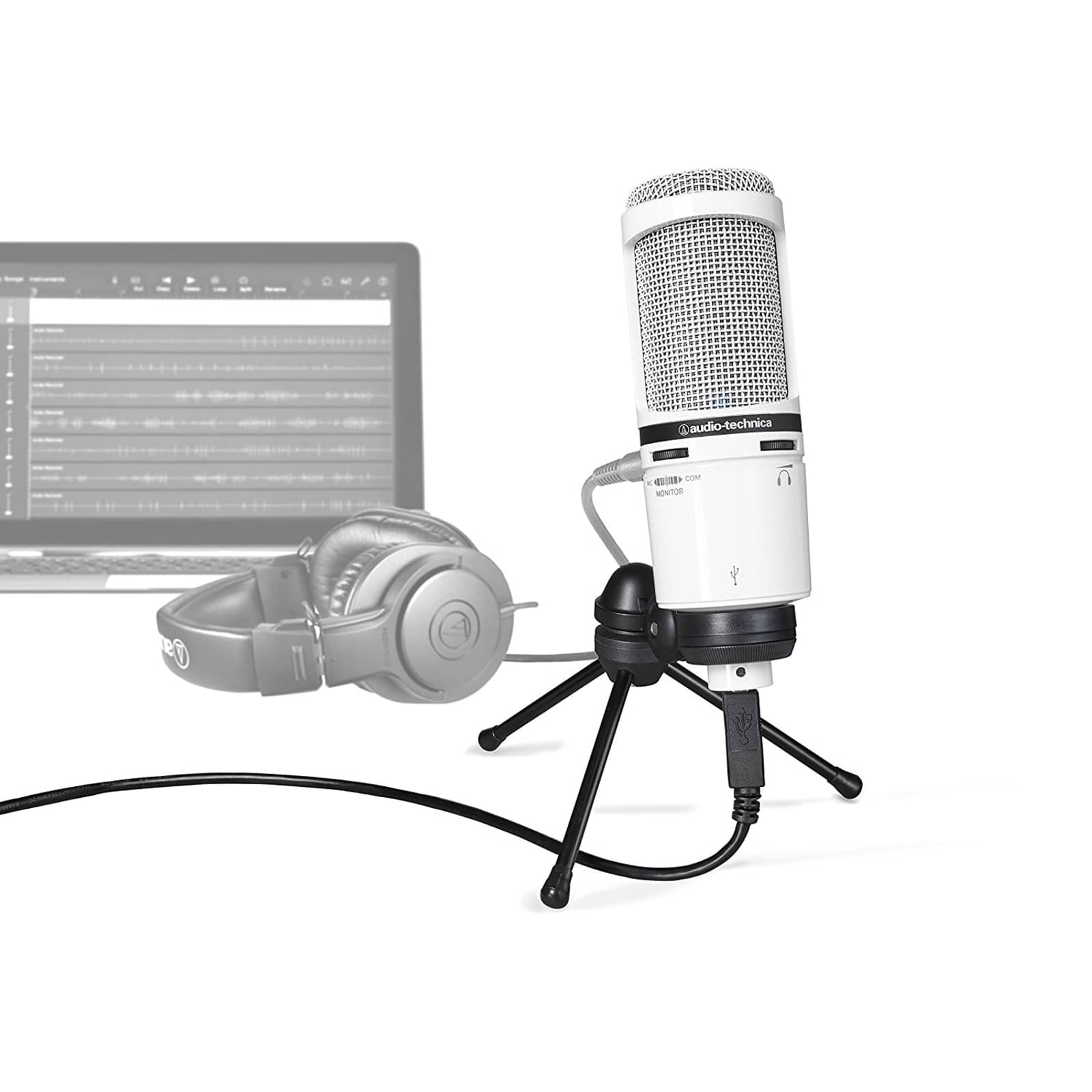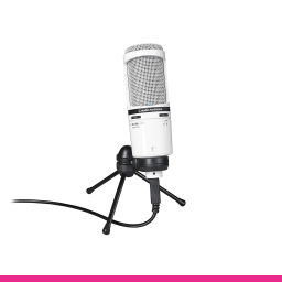 Audio Technica AT2020 USB+, microfon condenser cu interfață USB, ideal pentru home-studio-uri, podcasting si inregistrari pe teren. Se bazeaza pe modelul AT2020 și are fașă de modelul anterior o iesire de casti cu butoane de volum si mix pentru monitorizarea fara latenta si combinarea intre semnalul de microfon si sunetul din computer.