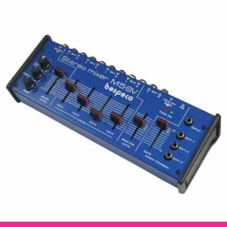 Mixer compact/sumator cu 5 canale, 5 intrari stereo de linie (Jack) si o intrare de microfon (Jack), EQ pe 2 benzi, 1 x intrare video RCA si 3 iesiri RCA video.